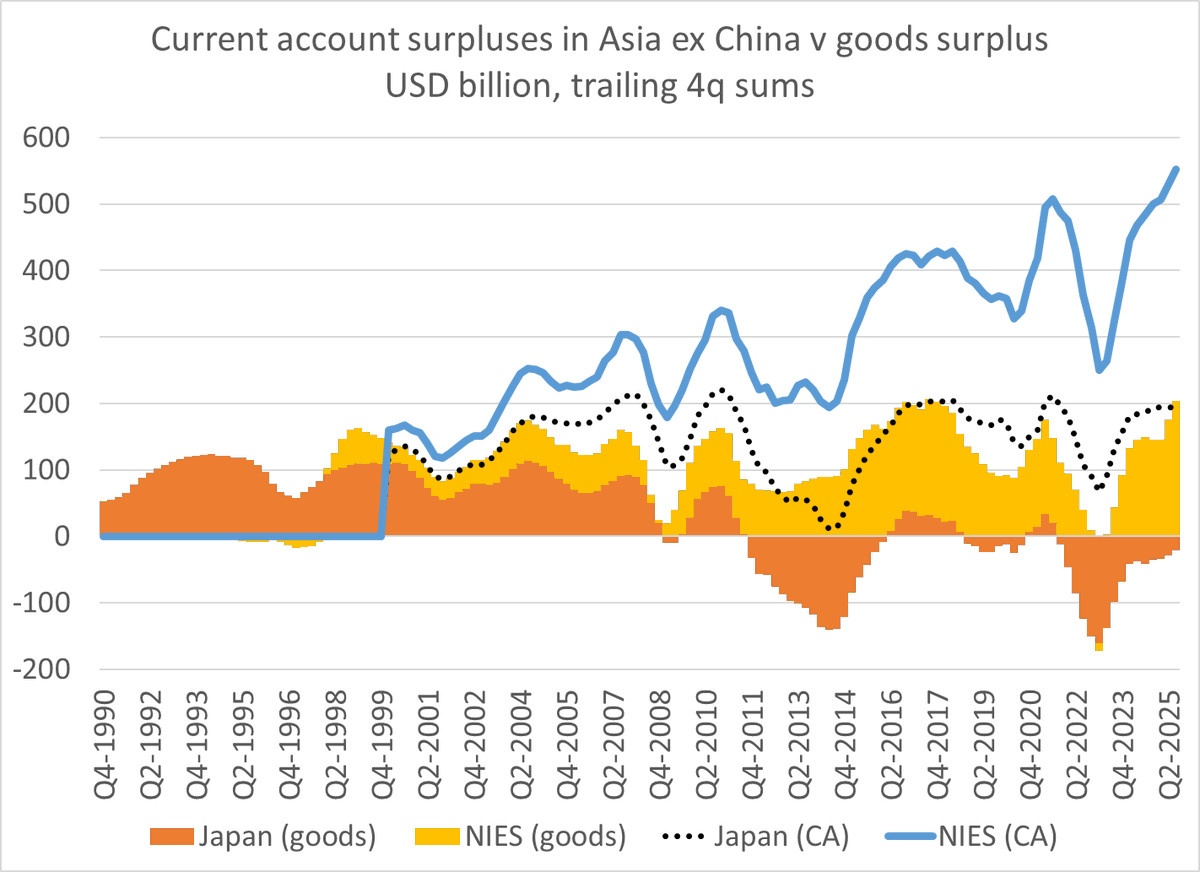 There is another point here -- one relevant for both @imfnews and France as they think about global trace and macro imbalances -- the current account surplus of East Asia ex China far exceeds their customs goods surplus ....