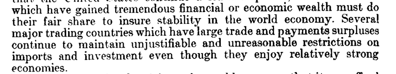 It is clear from the Senate report on the legislation that the authors were concerned about trade and payments surplus countries (Germany and Japan at the time) & the equitable sharing of balance of payments adjustment responsibilities across surplus and deficit countries