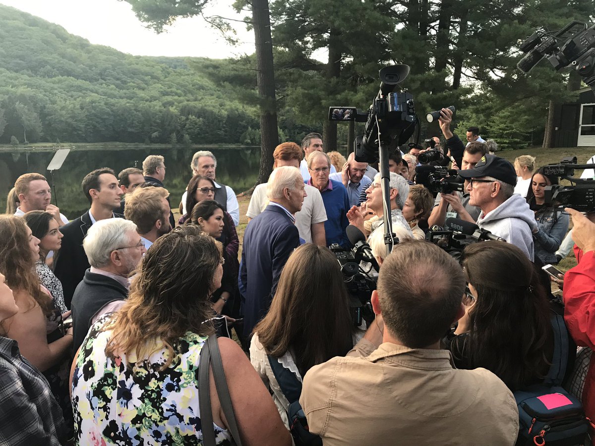 Talking healthcare, Biden notes he just spoke about the issue at Dartmouth, first says at the medical school (it wasn’t) before catching himself. Points to the press as he corrects himself to say: “I’m not going nuts.”