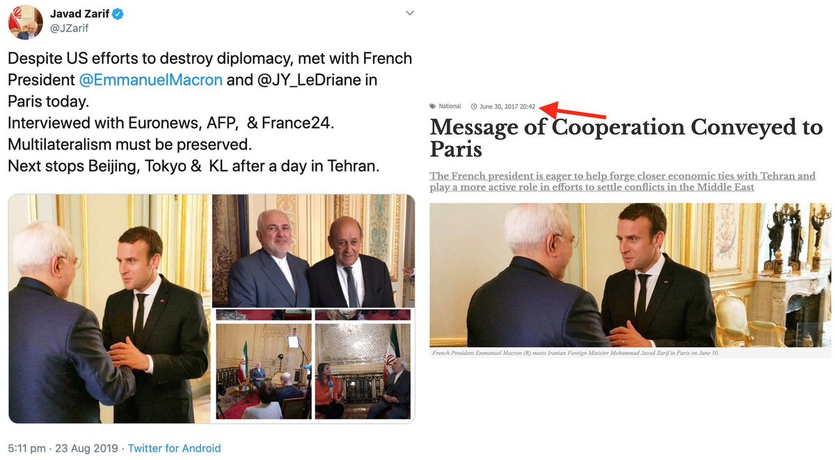 3) After no French official welcomed him at the airport upon arrival, @JZarif was further humiliated as Macron refused to take any pictures during their talks. #Iran