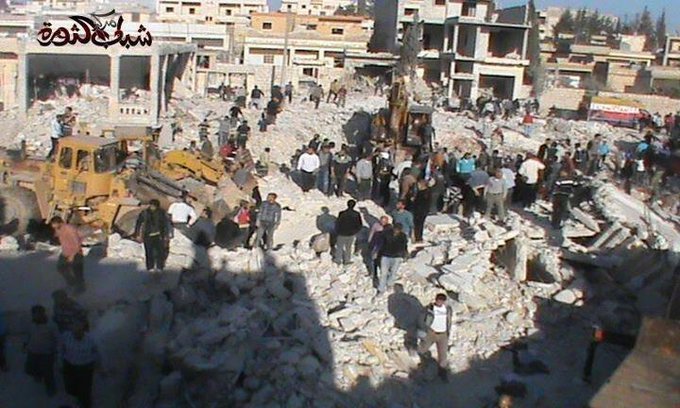 44-یکی از موشک ها به نقطه ای به مختصات35.007237 40.453001در نزدیک مدرسه ای به نام الرشاده اصابت کرد که پیشتر نیز بارها هدف حملات هوایی قرار گرفته بود.