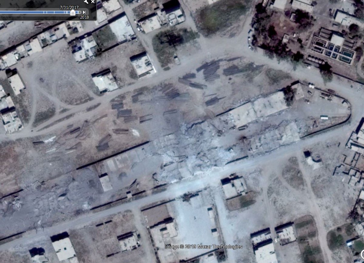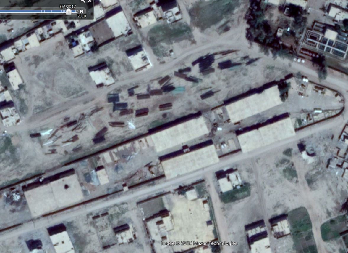 75-یک انبار احتمالی سلاح در چند سوله به مختصات 35.026208 40.437187 که تخریب آن در تصاویر Google Earth بین تاریخ های 4 می و 31 جولای 2017 مشاهده می شود.