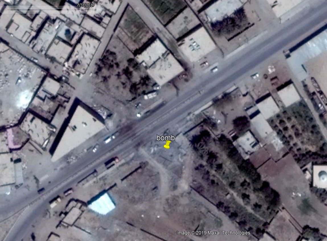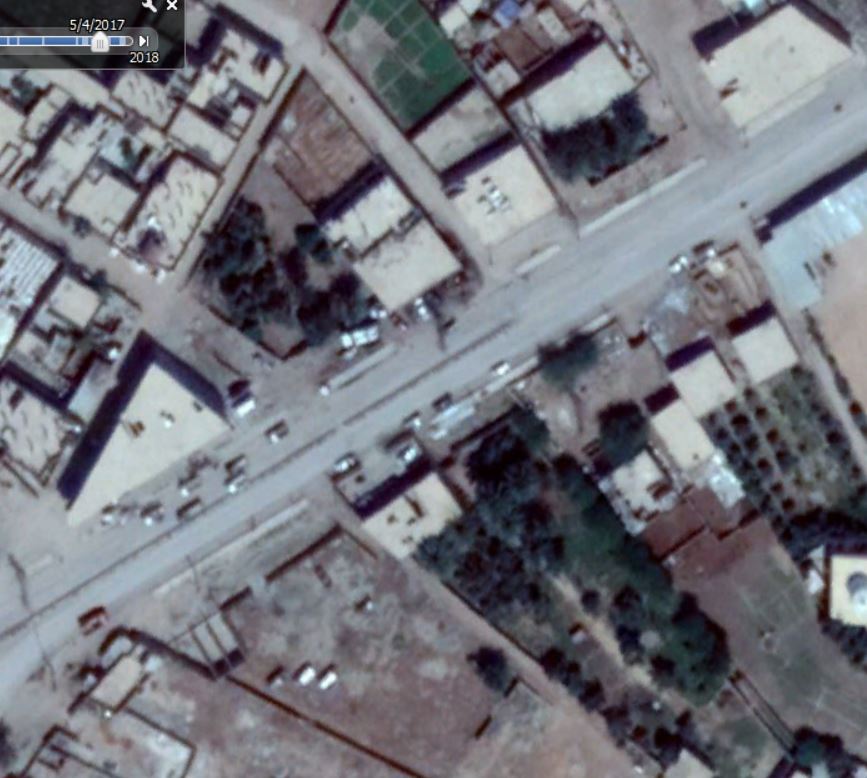 57-(مختصات های 35.394183 40.058134 و 35.394539 40.057461 ).با بررسی تصاویر ماهواره ای Google Earth مشاهده می شود بین تاریخ های 4 می 2017 و 31 جولای 2017 در این محدوده آثار اصابت هایی دیده می شود. تصاویر Planet بین 18 و 20 ژوئن این موضوع را به شکل دقیق تری تایید می کند.