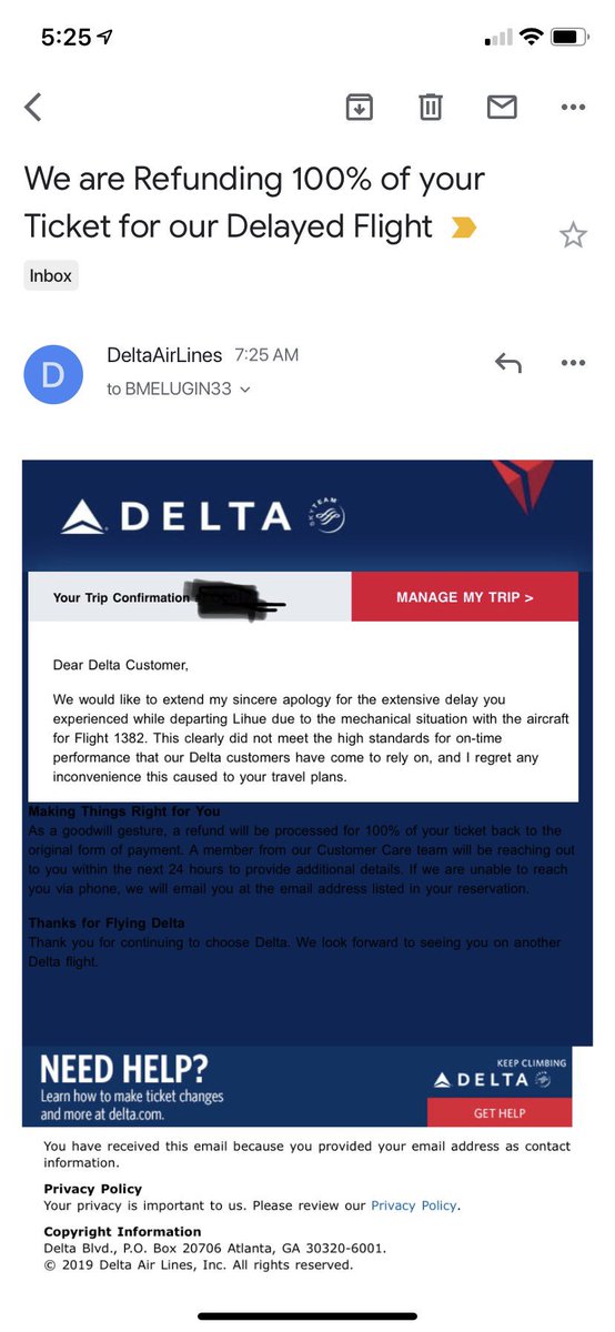 Now @Delta is saying my full flight won’t be refunded because I used Delta gift cards for the purchase. 13 delays, 3 cancellations, and 52 hours later, and they won’t even honor a full refund despite saying they would and how “sorry” they are. Pretty weak. #Delta9888