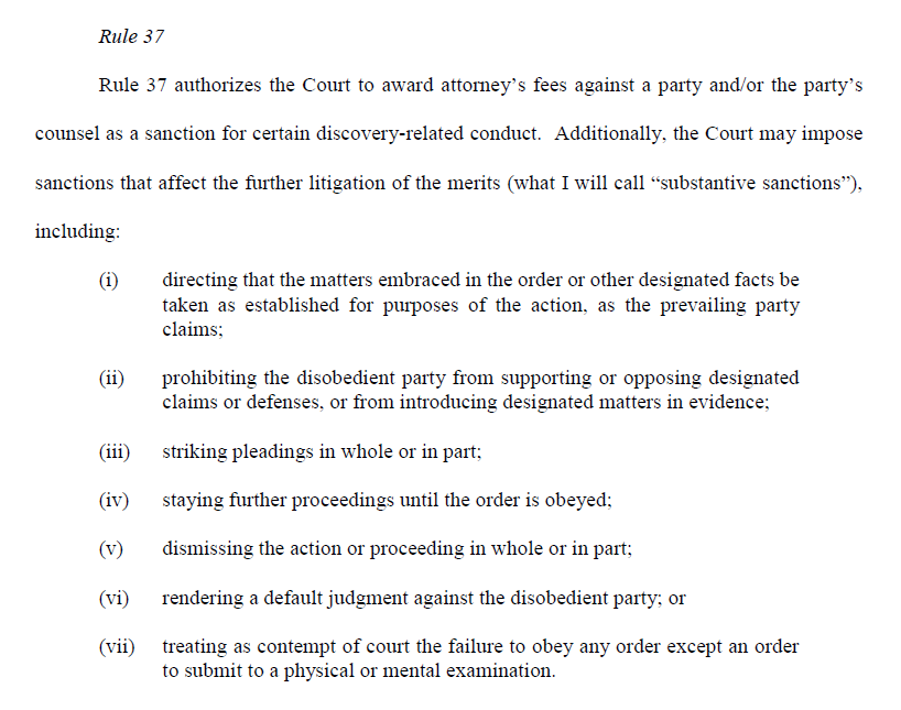As sanctions, the judge awards attorney's fees and strikes Wright's affirmative defenses, basically leaving Wright without a leg to stand on for the rest of the case.