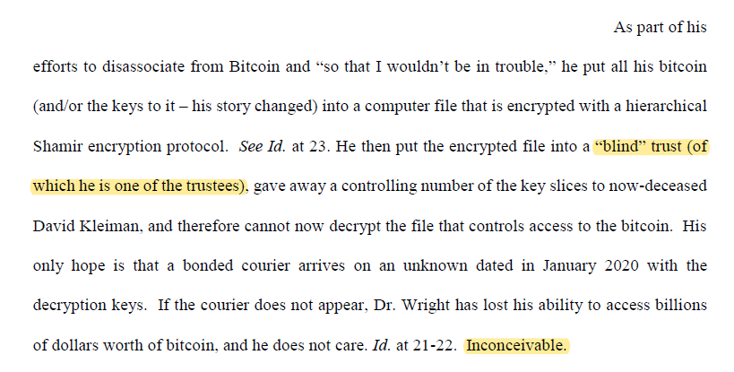 BONUS: The judge explains how Shamir's Secret Sharing works, since Wright previously stated untrue things about it.