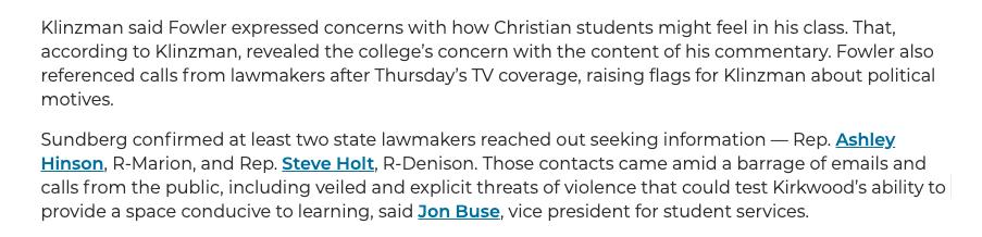Now it turns out that other local politicians were putting pressure on Kirkwood Community College as well.