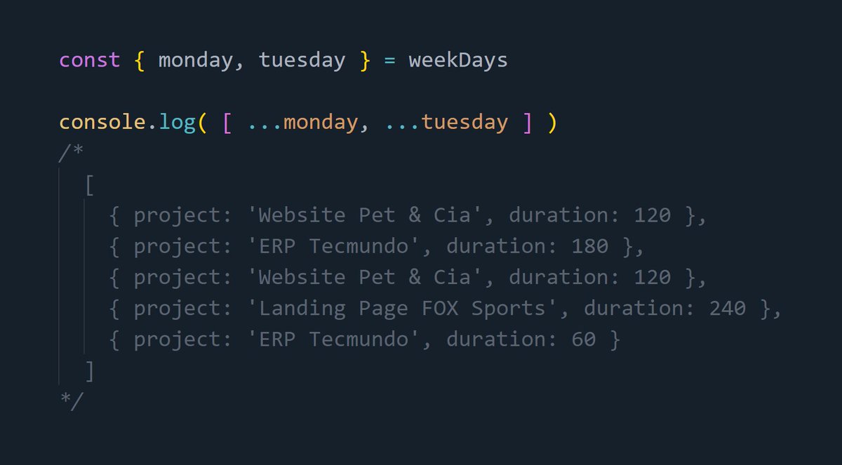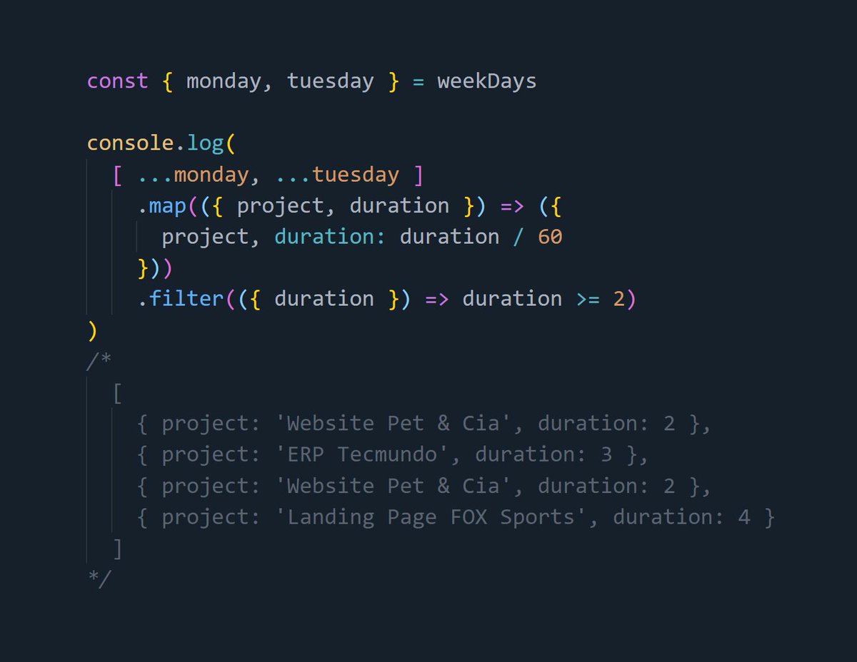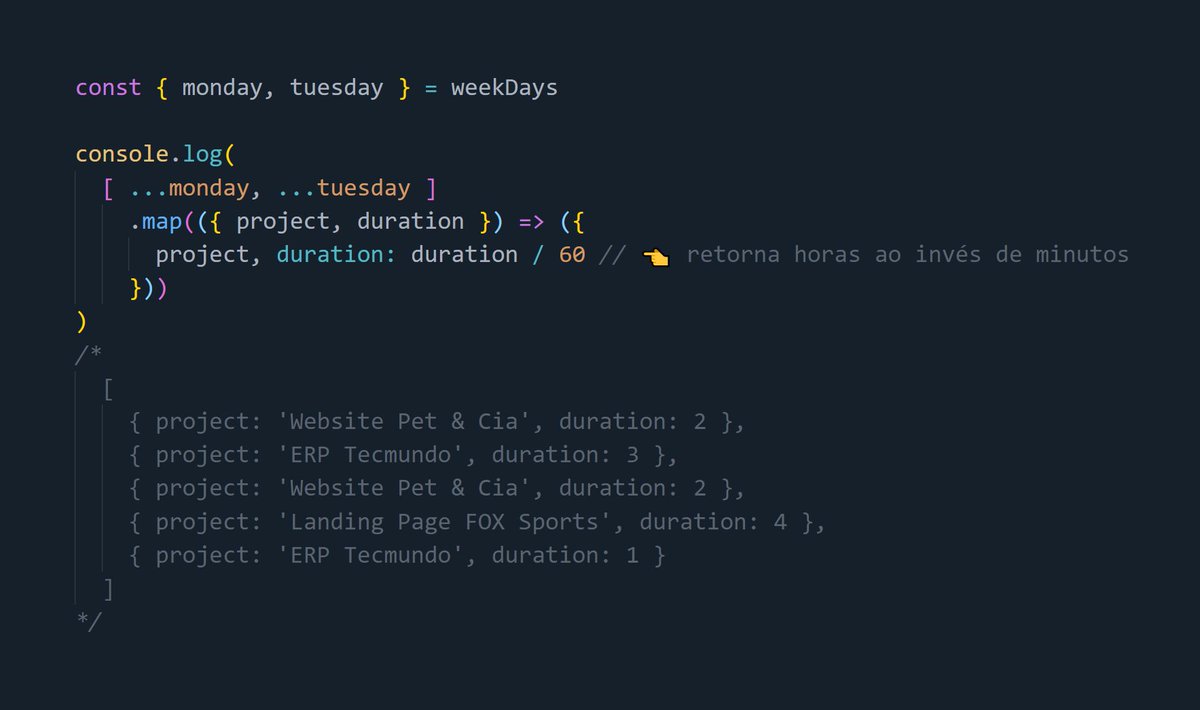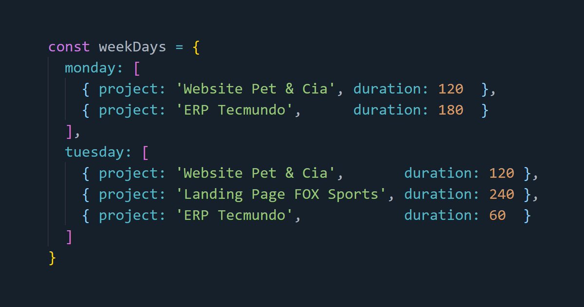 O objeto abaixo contém arrays com alguns projetos, organizados por dia da semana.