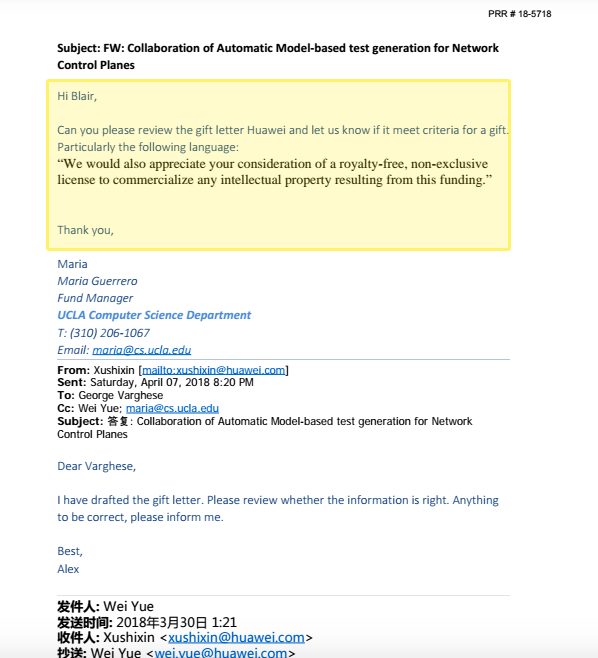 I asked the school last year about the partnership. Even basic information, such as the names of faculty who worked on Huawei-funded research, was withheld from the public. Via UC spox Dan Mogulof:
