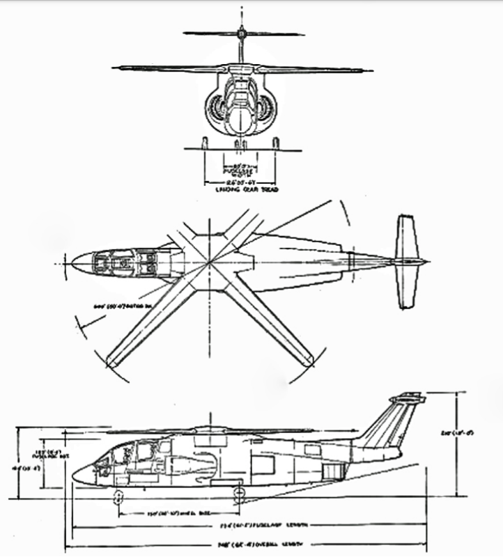 También se le podían instalar dos motores turbofan TF34 como los del Lockheed S3 Viking y un par de alas de incidencia variable que le permitían alcanzar una velocidad de 560 Km/h para realizar pruebas. En esta configuración podía volar como un avión sin el rotor instalado.