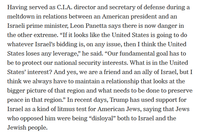 4/ And Leon Panetta raises the key point: US & Israeli interests do not coincide 100%. We certainly do not need a war with Iran. This whole gambit operates on 2 levels. Politically, Bibi needs a war for his political survival. Trump, politically, made a 6-nation deal with the