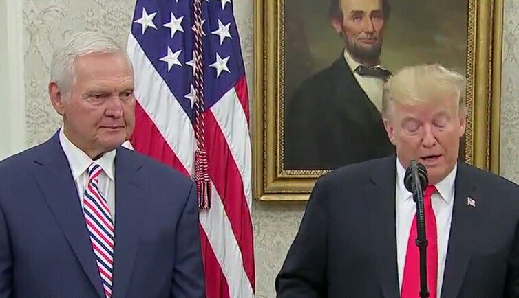 A better angle of the height differential between the supposed 6'3" Trump and the 6'2" Jerry West.