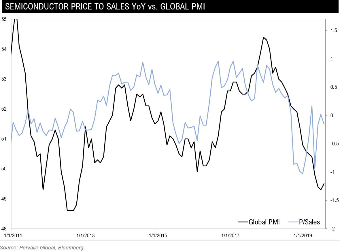 Price to sales indicating the same thing. Implies roughly a 24% haircut -- this assuming the PMI holds constant here which is not our base case.