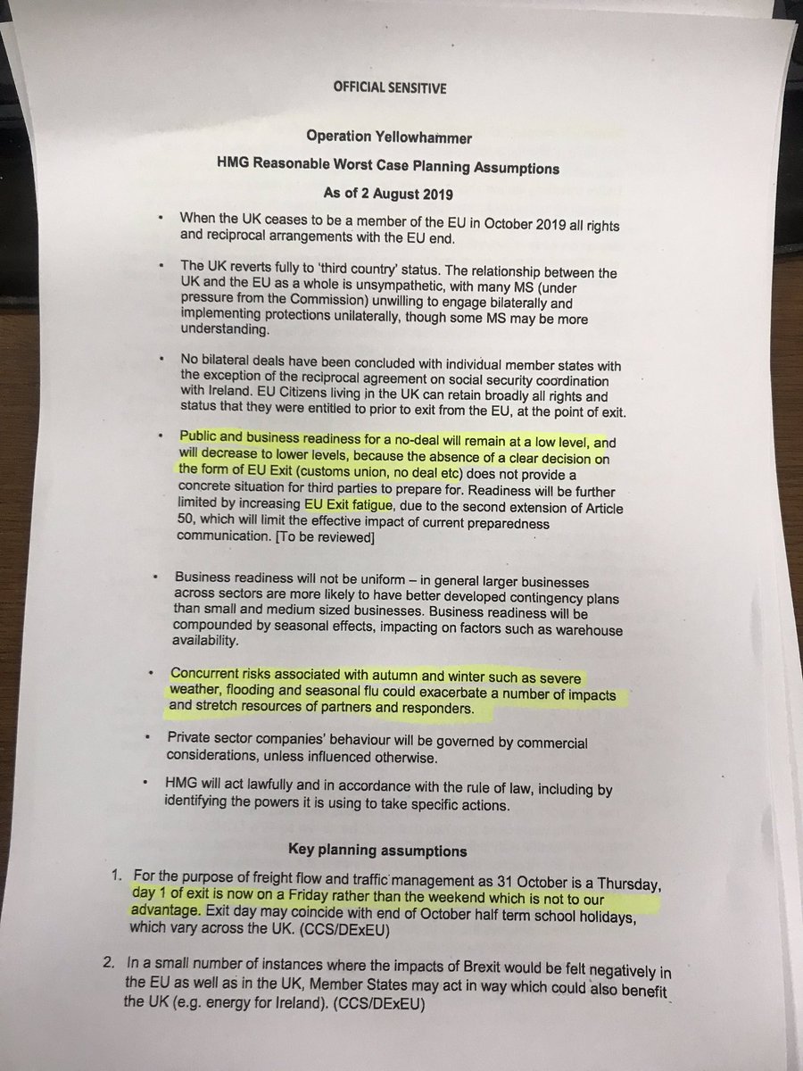Here’s Operation Yellowhammer, the worst-case scenario for No Deal Brexit: