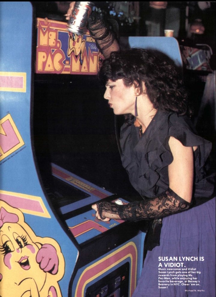 Susan Lynch may have been a one hit wonder in 1982 but her 'Big Reward' was getting her own Ms Pac-Man cabinet. Rumours that she used to take pills and see ghosts as a result are unsubstantiated. #NationalVideoGamesDay