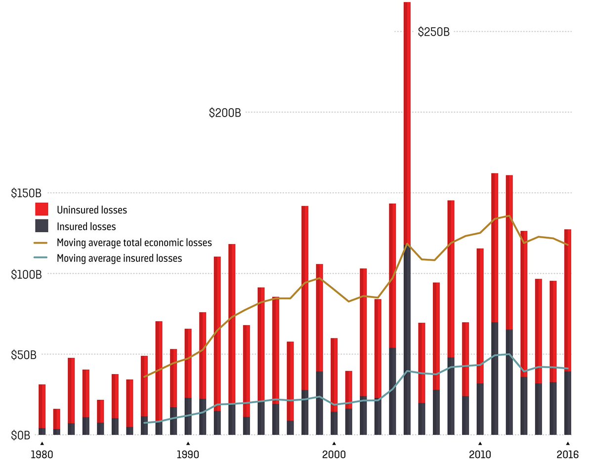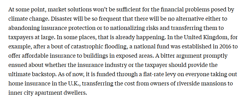 3/ Losses are growing. The author suggests that losses are manageable to the insurance industry when they are small and isolated. Climate change disasters alter that fundamental calculation.