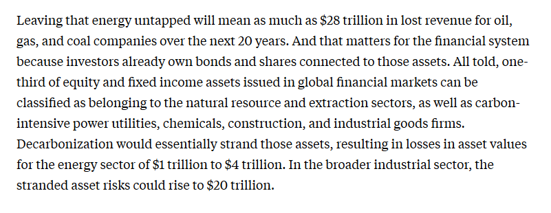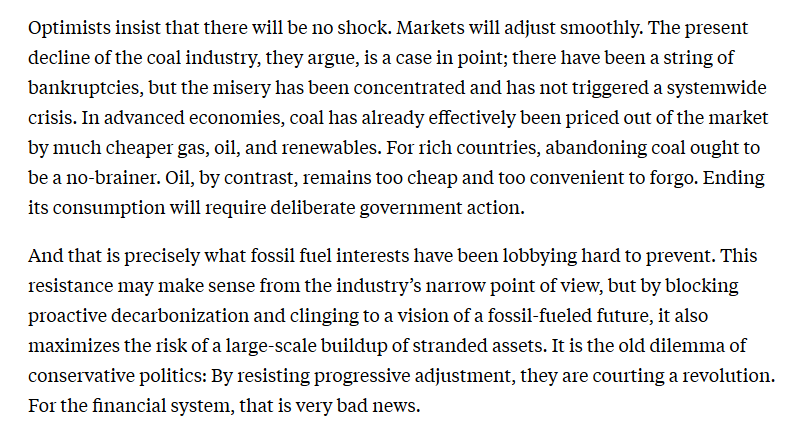 4/ The carbon-based energy industries want to be the winners until catastrophe strikes. Central banks and national governments are needed to undertake the financial risks.