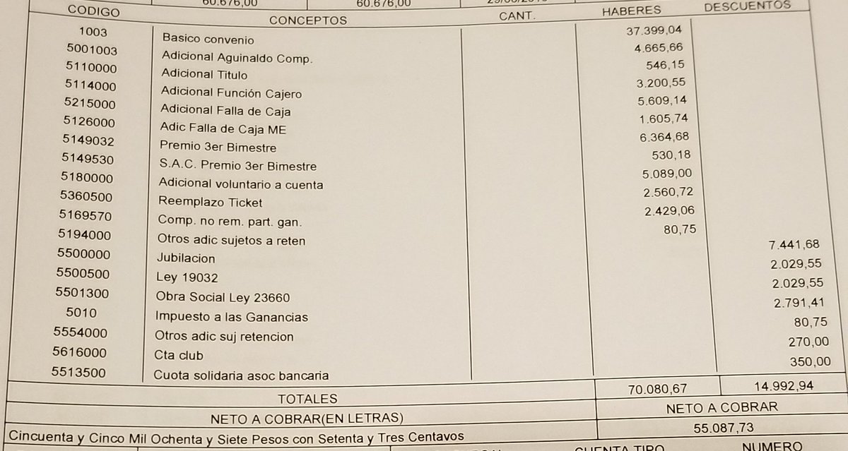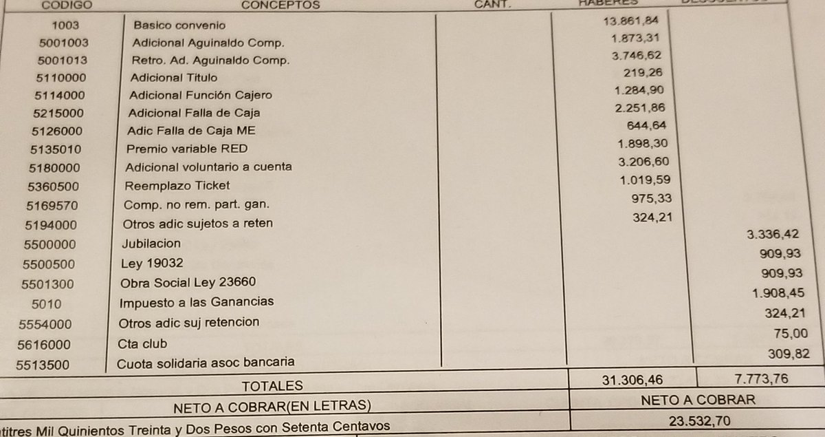 Yo entiendo que gracias al convenio bancario que tenemos ambos que pagamos el credito tenemos muy buenas paritarias. Pero vamos a poner un ejemplo de alguien que no tenga tan buen gremio.