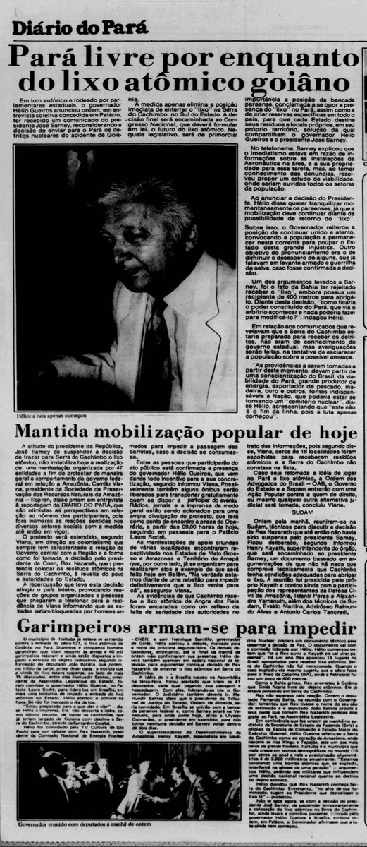 O então Governador do Pará, Hélio Gueiros, reagiu energicamente diante da possibilidade do Pará vir a ser destinatário de lixo atômico. Não podia compreender como é que o Estado, tão importante por suas riquezas naturais, responsável por grande parte da produção de mineral,