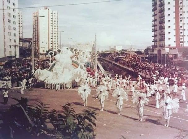 Época na qual o desfile oficial de Belém saiu da Av. Presidente Vargas, ladeada de mangueiras e atravessada por fios elétricos, para ser instalado na Doca de Souza Franco, mais larga. Nesta década, o Carnaval belenense fervilhava com a competição entre as Escolas de Samba (+) Image