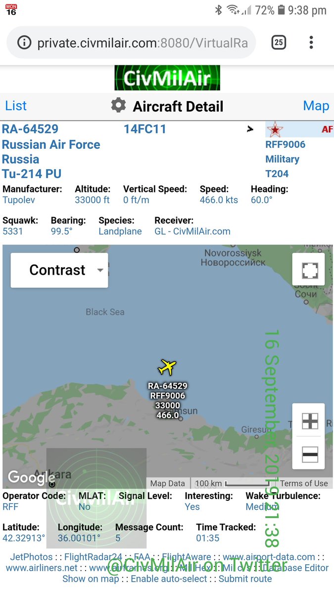 33,000ft heading over the Black Sea - Putin & chums heading back to Moscow after meeting with Iran & Turkey