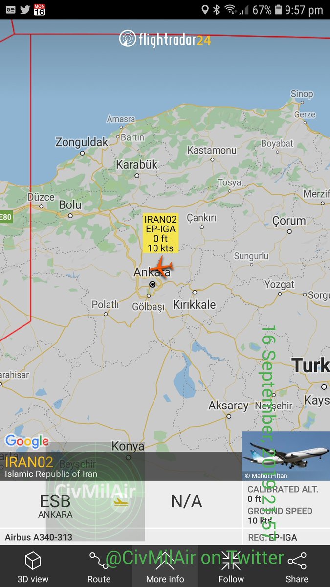 Callsign change... Now showing IRAN03 for the return flight to Tehran #Iran