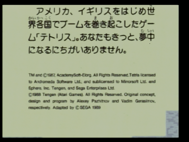 Here's the original manual intro blurb from PS2 Sega Ages archives vs. the new MD Mini manual. New intro changes "30-year-old researcher" to plainly "researcher" without mention of age, ブロック (block) becomes テトリミノ (Tetrimino), instances of Tetris now have ® appended.