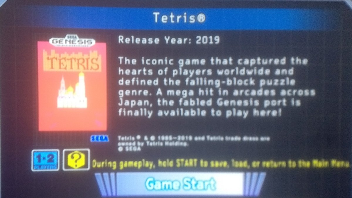 Man, not even Sega knows what Tetris they included on the Genesis Mini. The scoring table in the manual is for Mega Drive Tetris instead of the arcade version!