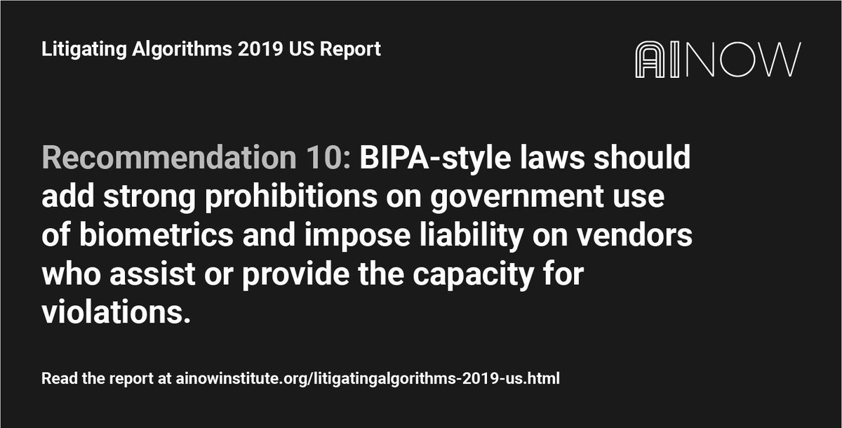 Recommendation 10: BIPA-style laws should add strong prohibitions on government use of biometrics and impose liability on vendors who assist or provide the capacity for violations.