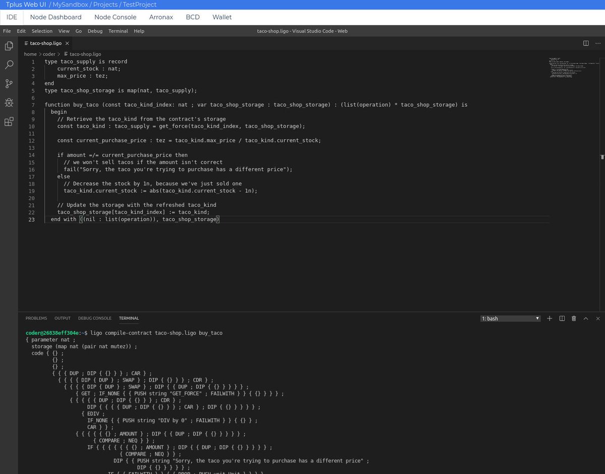 Tplus can provide its users with a preconfigured vscode IDE, with things like @LigoLang and @SmartPy_io preinstalled