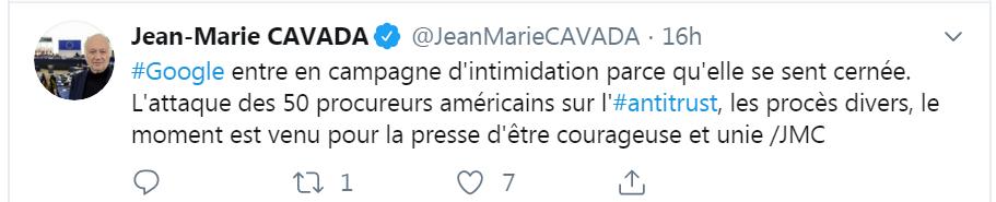 Suite aux réactions de l'eurodéputé @JeanMarieCavada, quelques tweets remaniés dans un [thread] à propos du psychodrame Google vs la planète (des éditeurs et agences de presse FR)