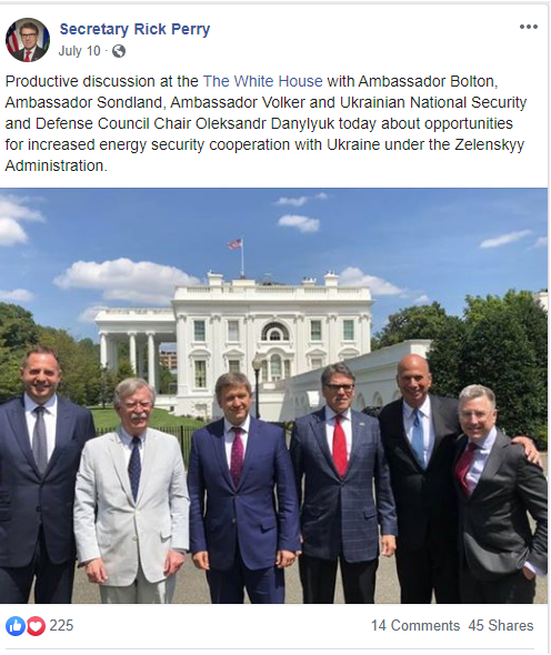 One of the contacts between Ukraine and the White House that I was hoping the whistleblower might shed more light on is the mid-July meeting with the Ukraine's Secretary of the National Security and Defense Council. Ricky Perry, Bolton, Volker, and Sondlond were all there.