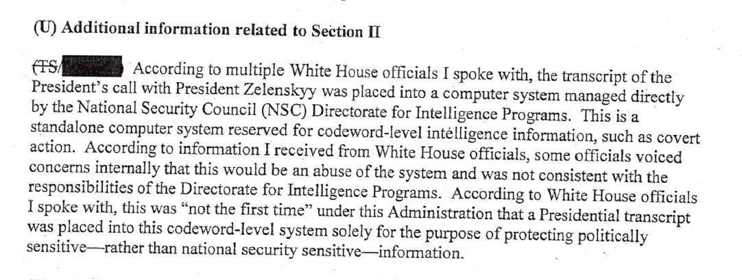 Not to mention all the so-far nameless officials who did their best to protect Trump's abuse of power from being exposed, by abusing power themselves to misclassify and conceal conduct by the President that they recognized to be serious misconduct, and possibly criminal.