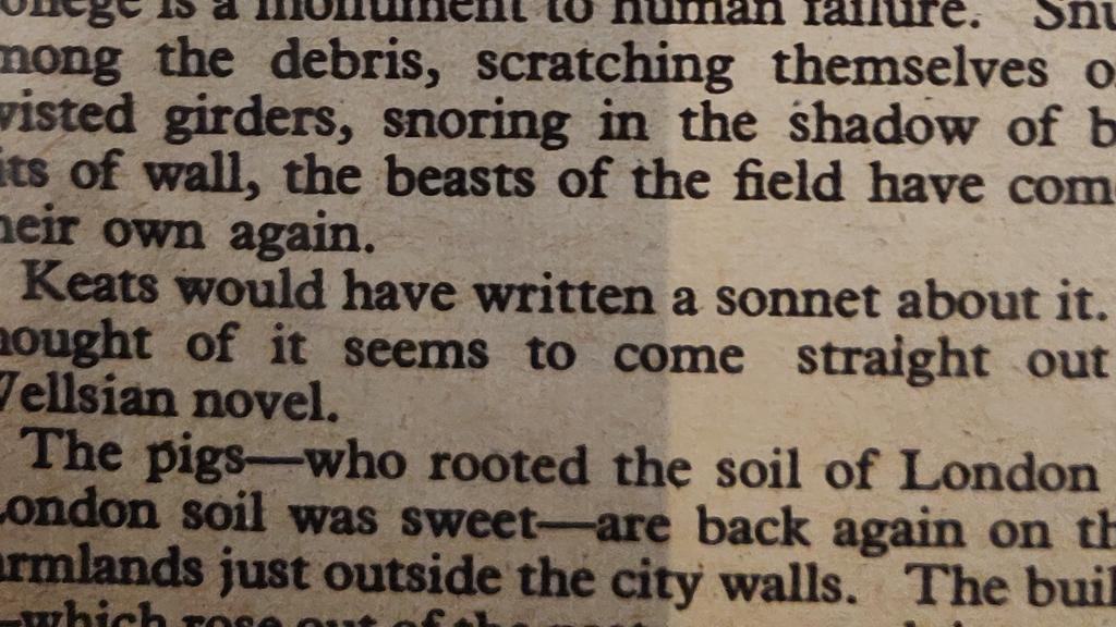 The writing emanates a fierce poetic aura. It's apocalyptic. It's Cormac McCarthy, but even more wired. Like he was made of Meccano. Or string.