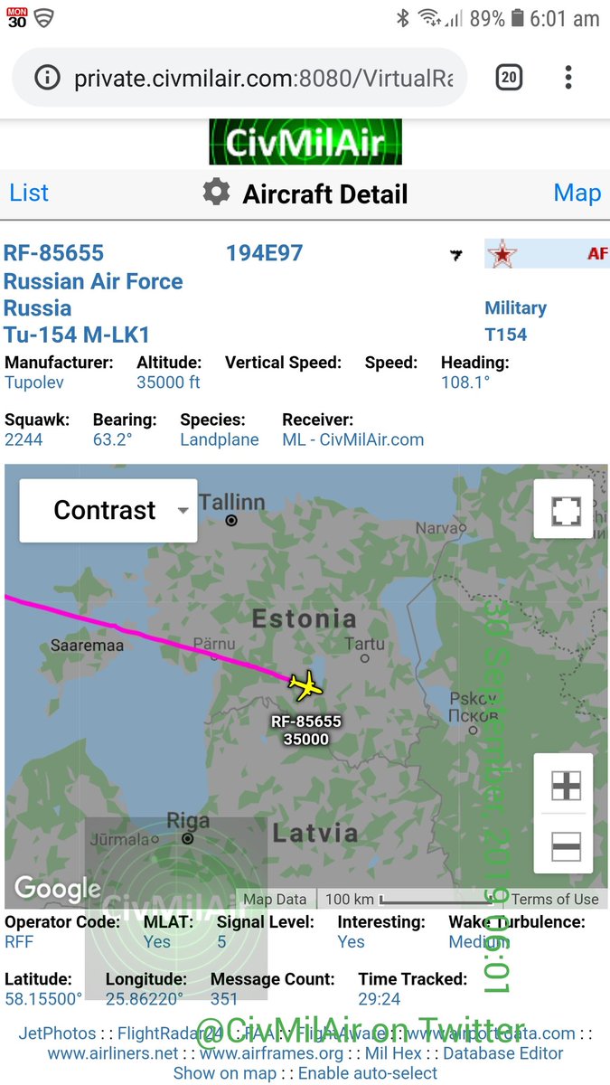 35,000ft over Estonia, heading back into Russian airspace