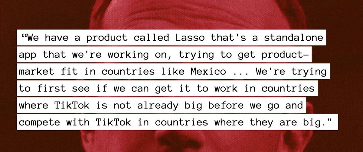 And he outlines the company's plan to beat TikTok, by introducing its clone app Lasso in countries like Mexico where TikTok has yet to make inroads: