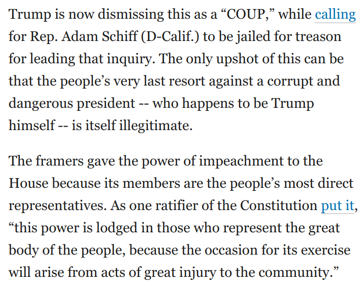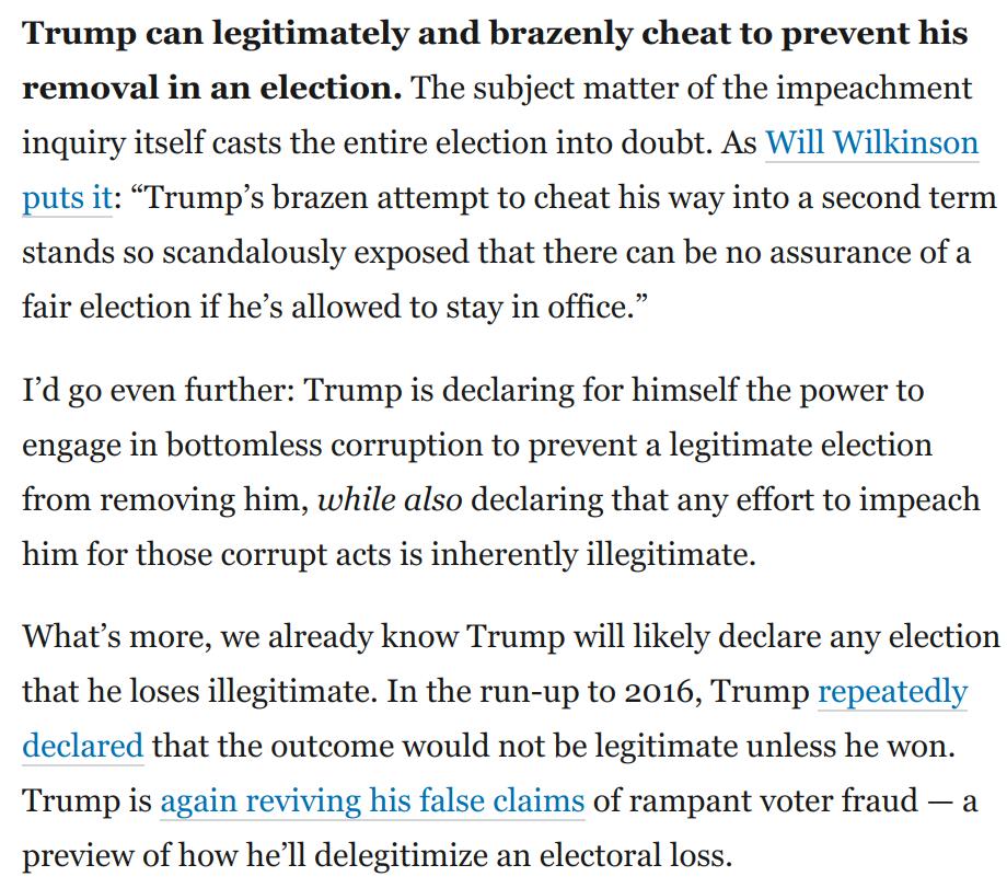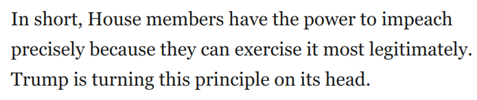 * Trump is also declaring that any effort to impeach him for those corrupt acts is inherently illegitimate