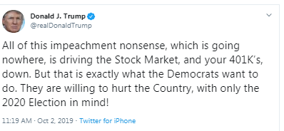 Sandra Smith on stock market dip: I just wonder, the uncertainty over the impeachment proceedings, too, playing out.