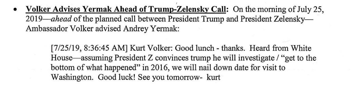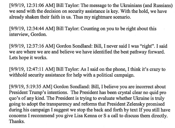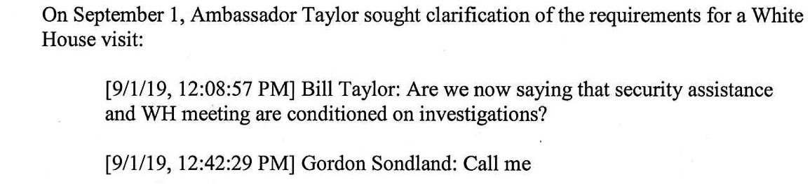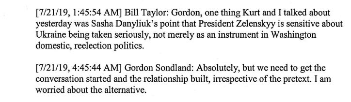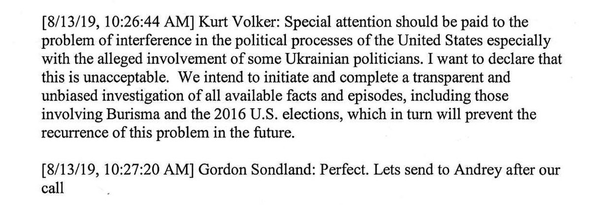 It seems very clear from those texts that some US officials believed military aid was being held back to secure investigations into Biden (and 2016 election meddling).