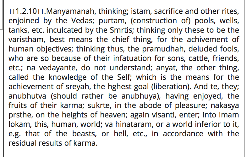 In this traditionalist view, the Upanishads are not a historical development that arose in reaction to the ritualism of the earlier period, but works that are consistent with the karmakAnDa