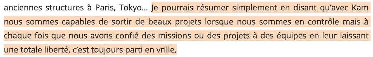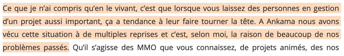 Mon passage préféré. Mes employés ont pris la grosse tête. Wow wow wow. Faut l'encaisser celle-là. Combien de personnes se sont donné à 300% pour le jeu pour se retrouver blacklisté ou dans des placards parce qu'ils défendaient une vision différente ?