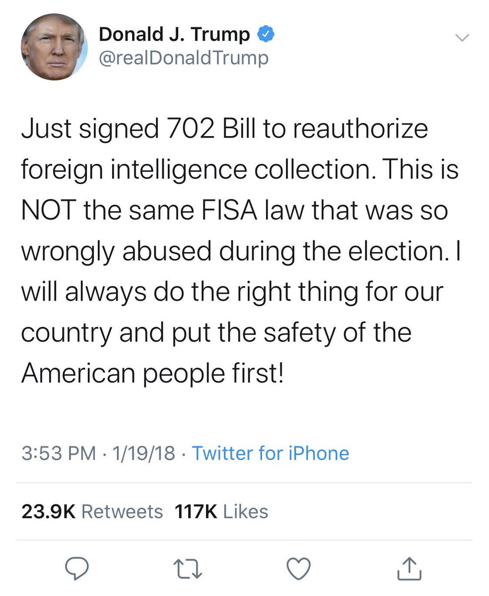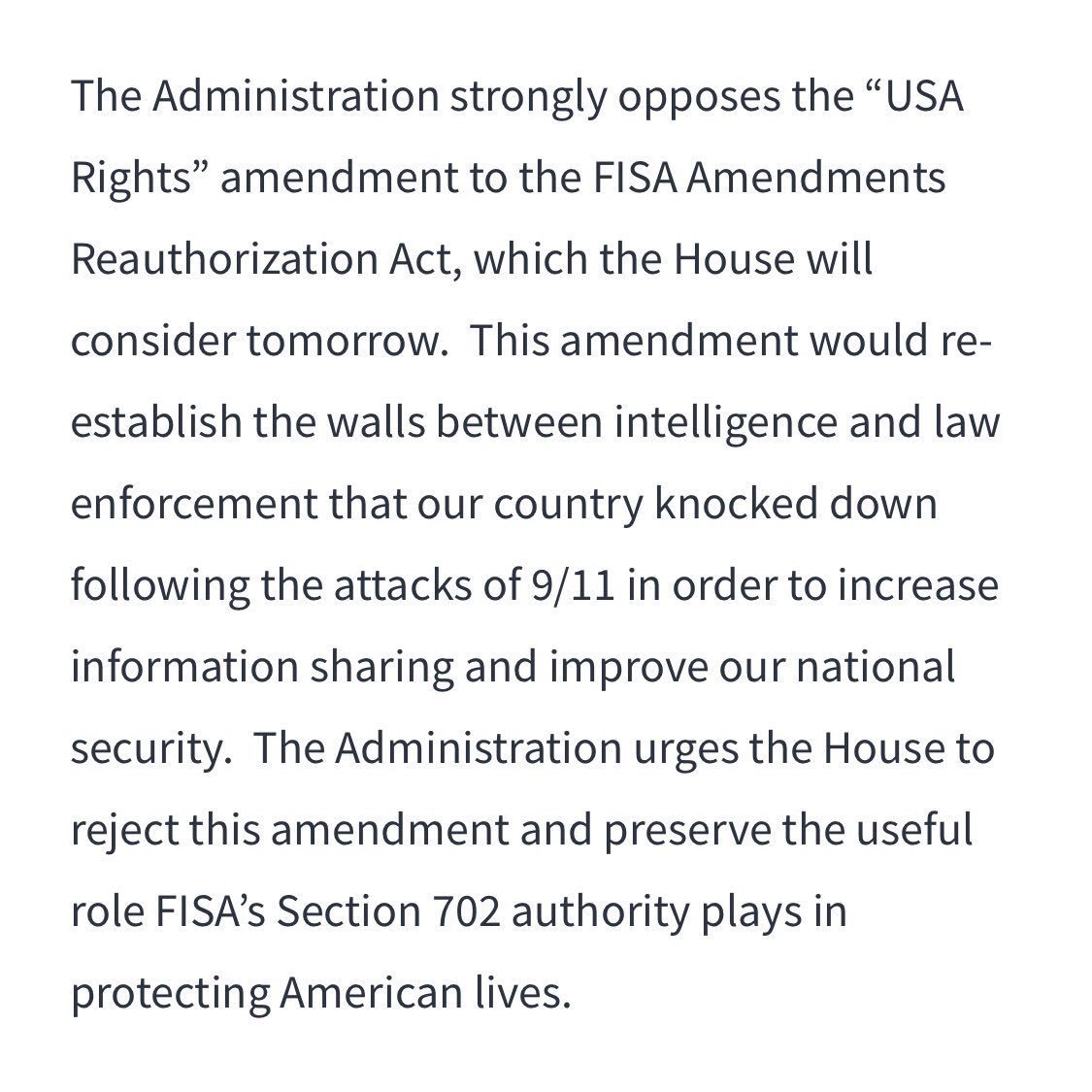 This is FISA 702. In 2018, I led the charge against the establishment to stop this program. President Trump attacked my efforts and signed it into law, with the support of Ryan, Pelosi, McCarthy, Nunes, and Schiff. It’s an outrageous violation of our Constitution and our rights.