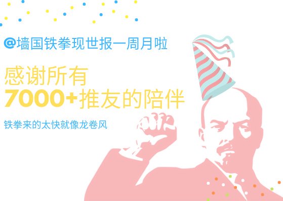 9月11日开办的墙国铁拳现世报, 今天满月了!多谢一个月来各位看官捧场,感谢大家的转发点赞评论三连。还要特别感谢给小编投稿的各位,是你们让这个推坚持活跃下去🙏