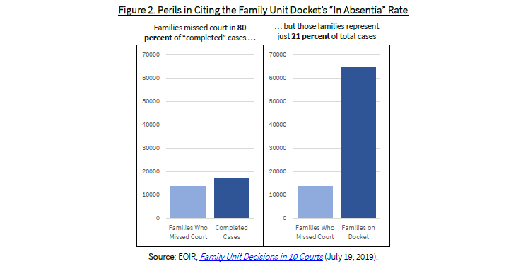 Through July 19, families had missed court in only 21% of cases, despite an "in absentia" rate of 80%.