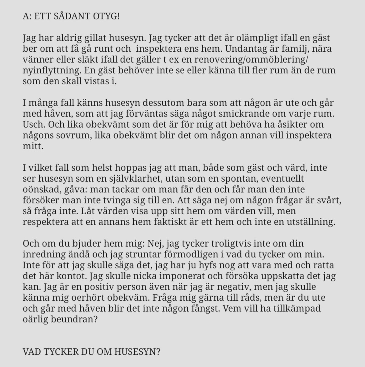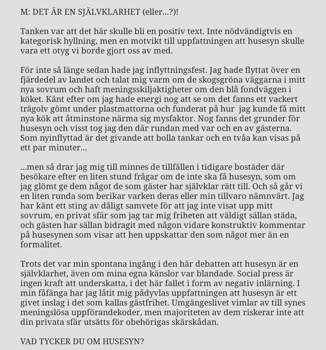 "Ska husesyn erbjudas?" frågade vi i vår senaste omröstning och resultaten förvånade. Vi var inte heller helt eniga, som ni kan se på bild 2 och 3. Så tyckte vi, men vi vill förstås veta vad ni tycker!