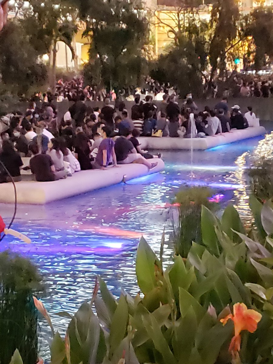 Meanwhile, a speaker is making a speech and people are applauding, but it's very hard to hear.