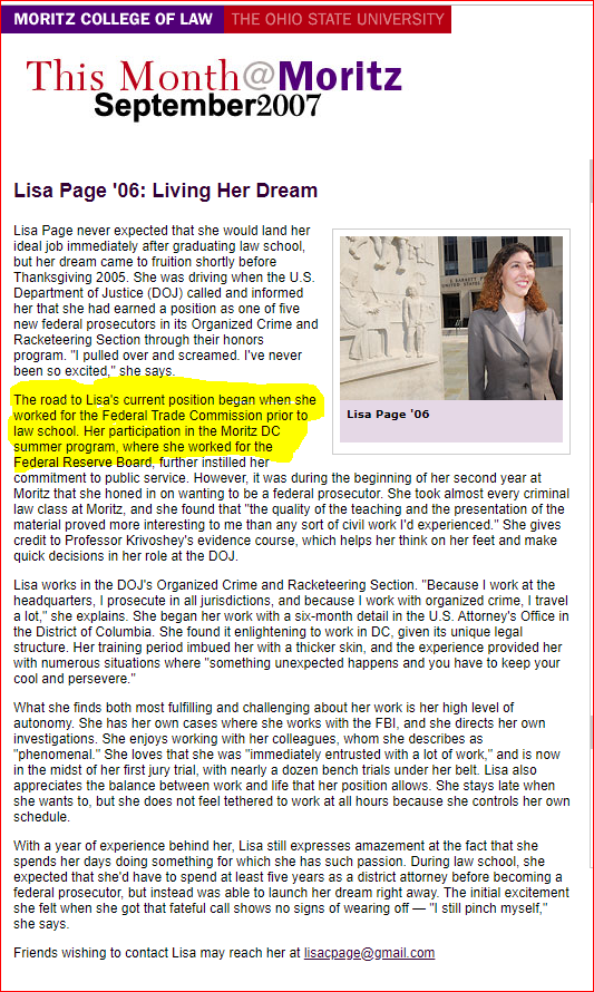"worked for the Federal Trade Commission prior to law school. Her participation in the Moritz DC summer program, where she worked for the Federal Reserve Board..."