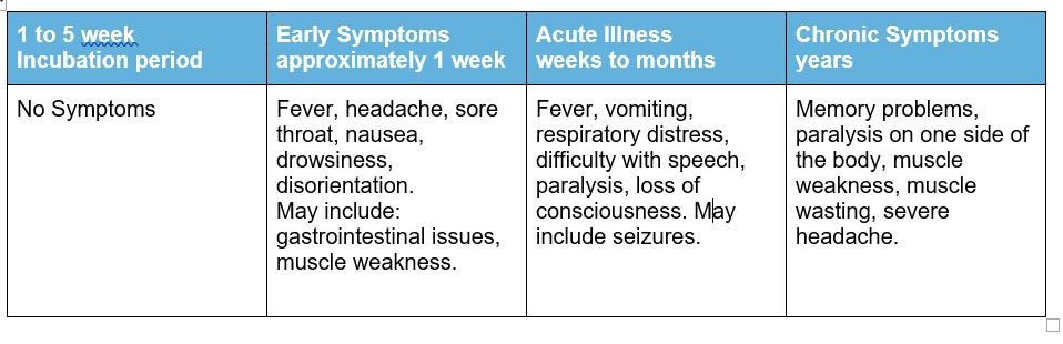 Powassan may already be much more prevalent than we think. One study in WI of the patients who tested positive for Lyme 17% had serologic evidence of POWV infection. Meaning some people may get a lighter case than others. This is a timeline I made of the symptoms of Powassan./6