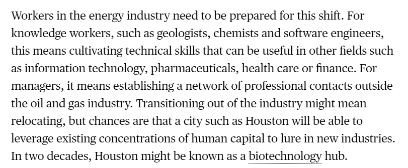 And oil isn't going to vanish. We'll still need it for plastics. And for jet fuel and ship fuel, at least for a while.