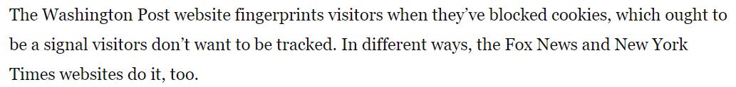 They talked to the fingerprinting sites that they found, explained why it's bad, and got a few of them to promise to remove the fingerprinting 3rd parties. That's progress! More of this please. washingtonpost.com/technology/201…